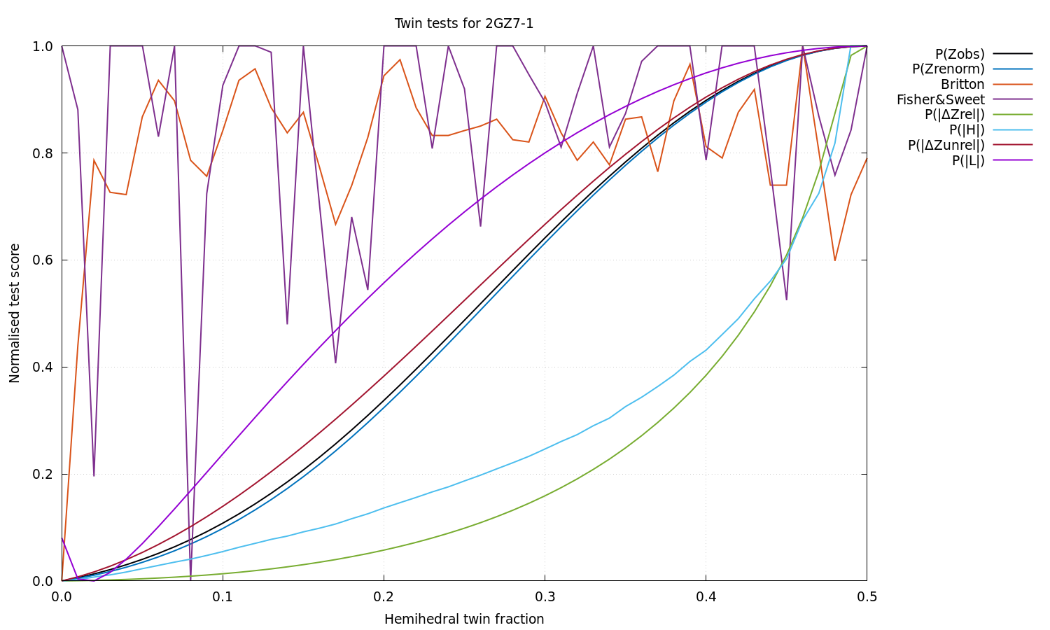 Estimated twin fraction from K-L divergence of unrelated acentric |delta-Z| probability: 0.00
