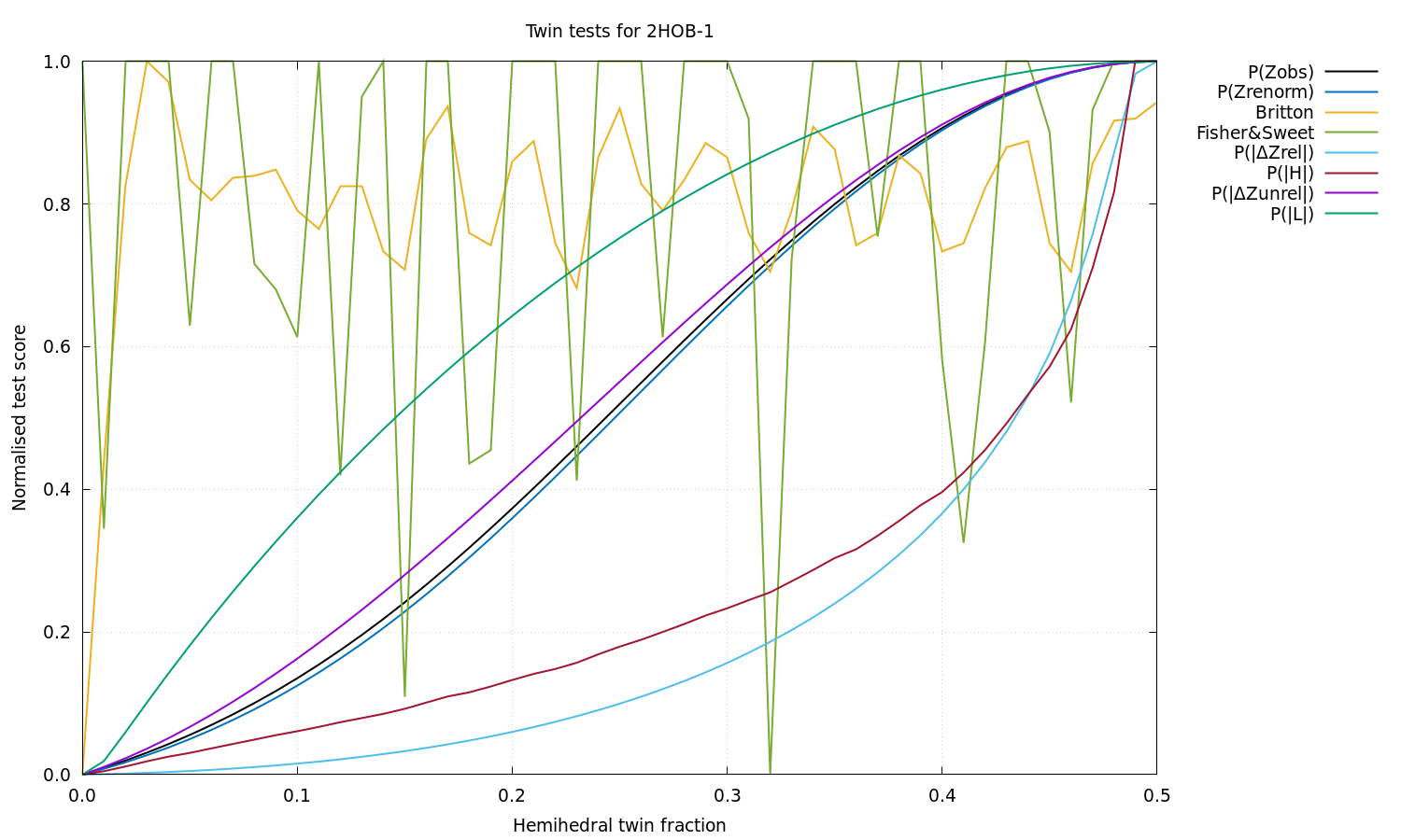 Estimated twin fraction from K-L divergence of unrelated acentric |delta-Z| probability: 0.00