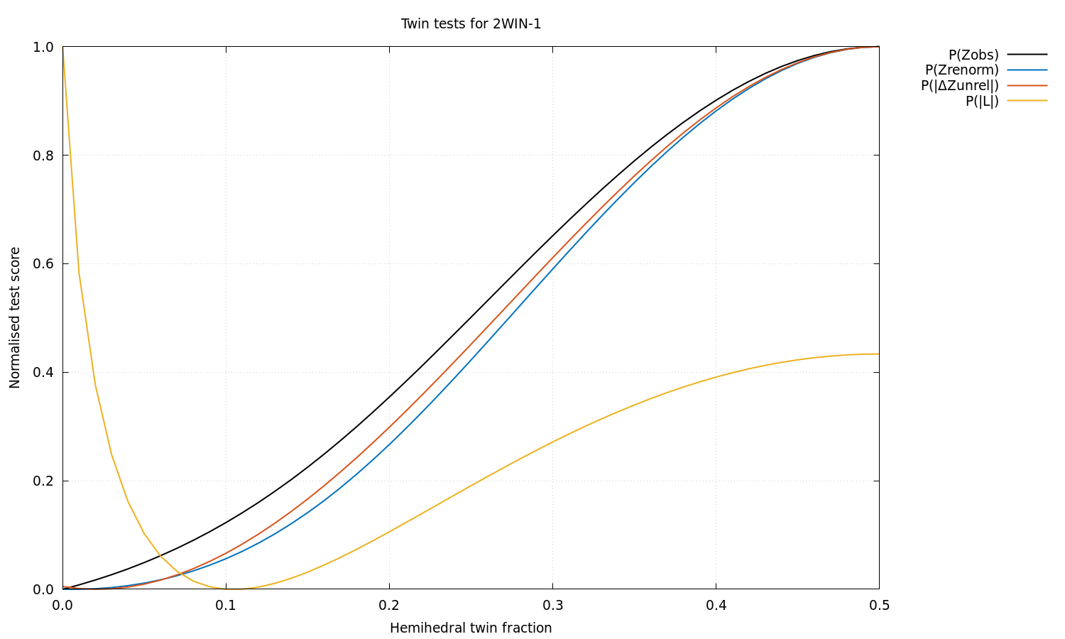 Estimated twin fraction from K-L divergence of unrelated acentric |delta-Z| probability: 0.02