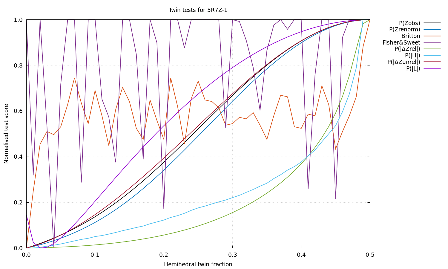 Estimated twin fraction from K-L divergence of unrelated acentric |delta-Z| probability: 0.00