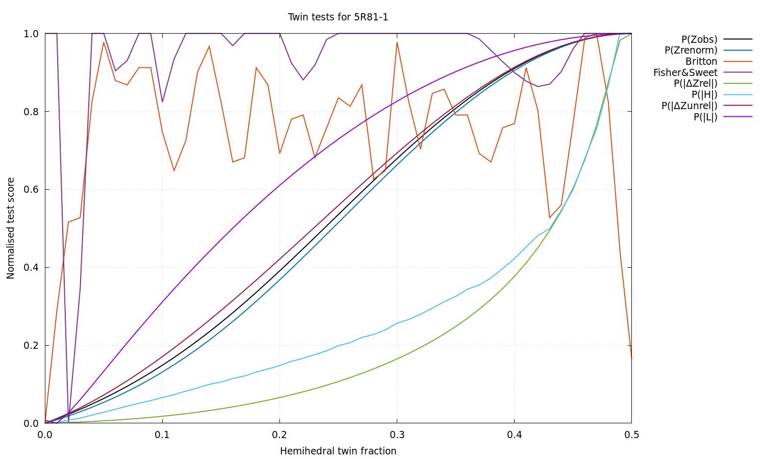 Estimated twin fraction from K-L divergence of unrelated acentric |delta-Z| probability: 0.00
