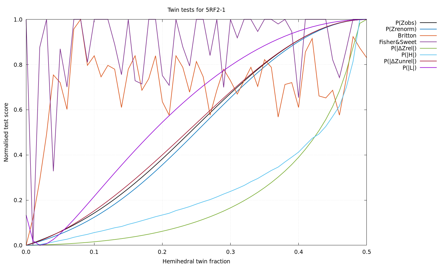 Estimated twin fraction from K-L divergence of unrelated acentric |delta-Z| probability: 0.00