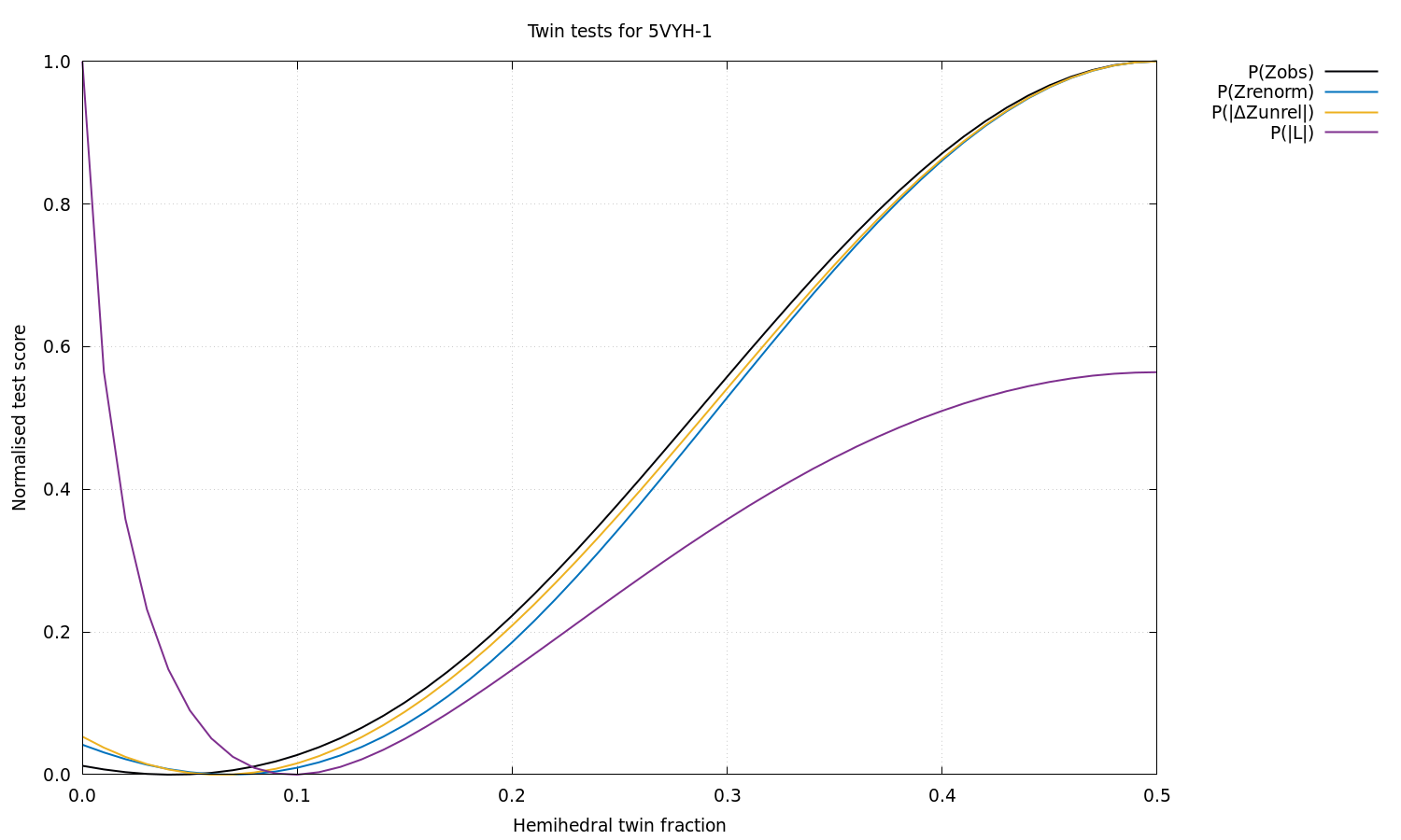 Estimated twin fraction from K-L divergence of unrelated acentric |delta-Z| probability: 0.06