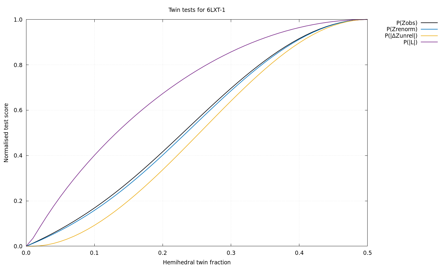Estimated twin fraction from K-L divergence of unrelated acentric |delta-Z| probability: 0.01