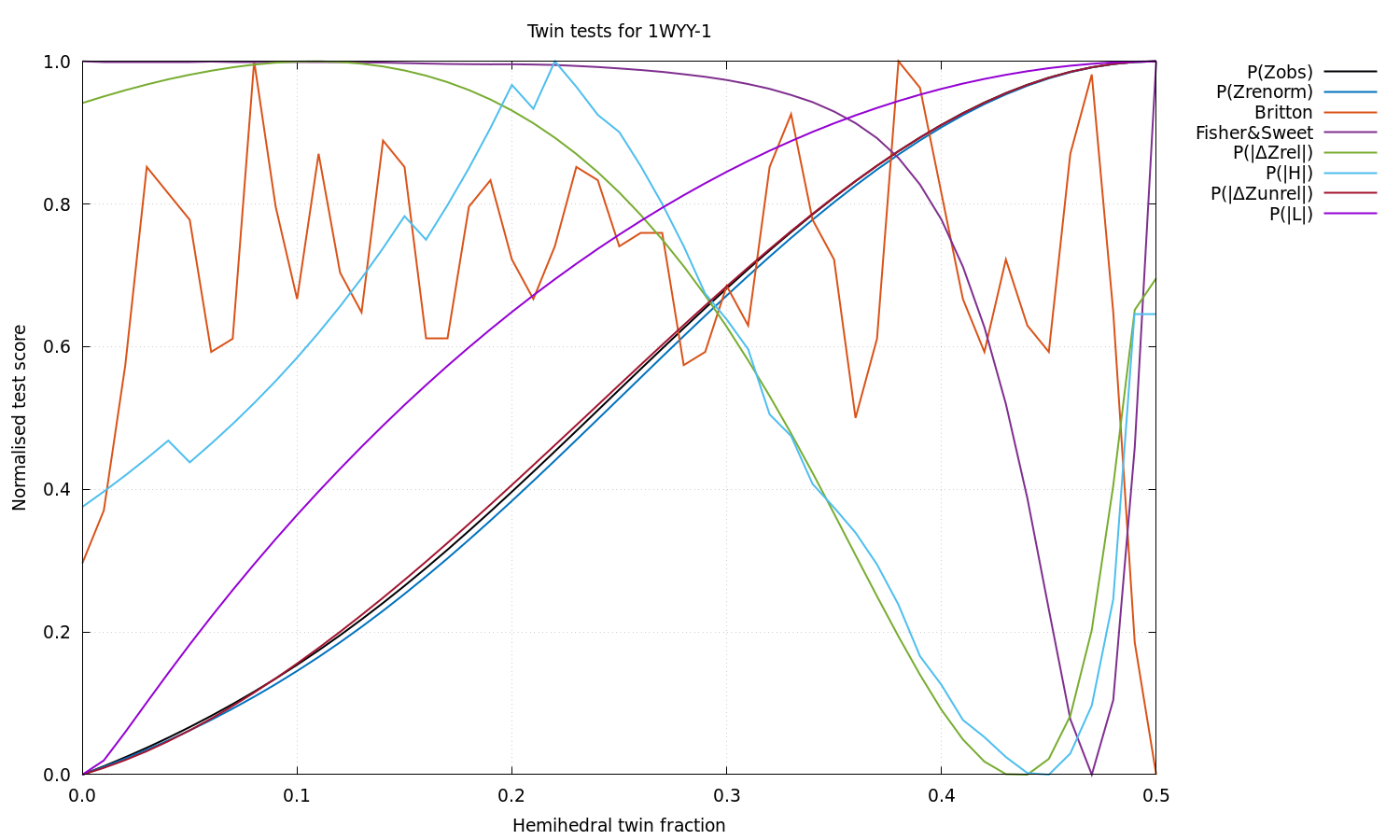 Estimated twin fraction from K-L divergence of unrelated acentric |delta-Z| probability: 0.00